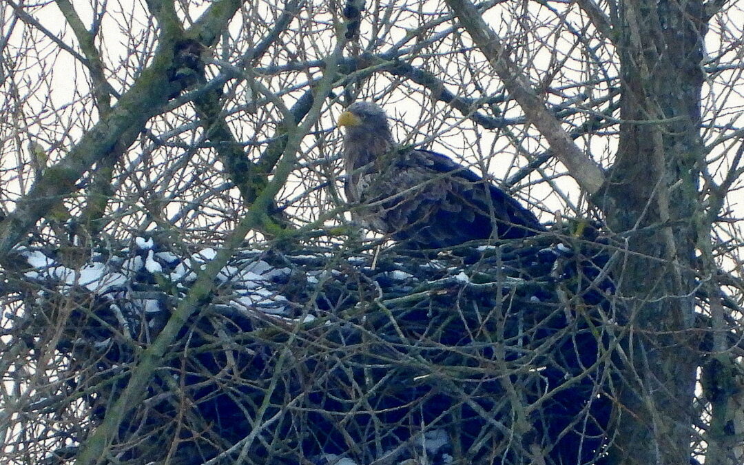 Auf Schwansen sind alle fünf Seeadlerpaare (Barkelsby, Thumby, Waabs, Rieseby und Olpenitz) in der aktiven Balz und somit in den Brutvorbereitungen. Es ist wichtig, dass ein Altvogel nach der Eiablage immer auf dem Gelege bleibt, da dieses ansonsten bei den aktuellen Minusgraden schnell abkühlt. Seeadler sind sehr störempfindlich, ein großer Abstand zu den Horsten muss unbedingt eingehalten werden. Verlässt ein Adler sein Gelege, ist es zudem Nesträubern wie Kolkraben und Krähen schutzlos ausgesetzt.