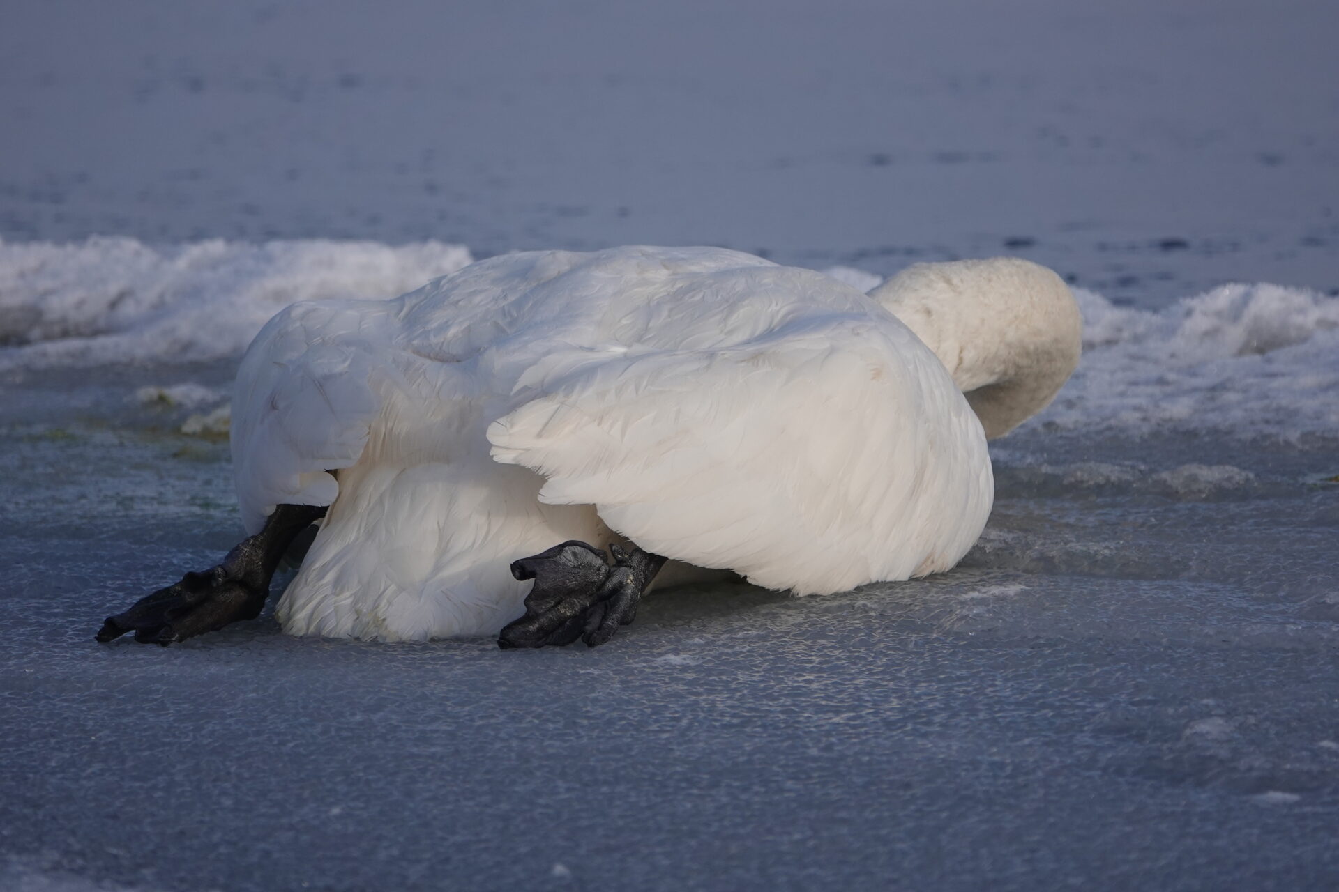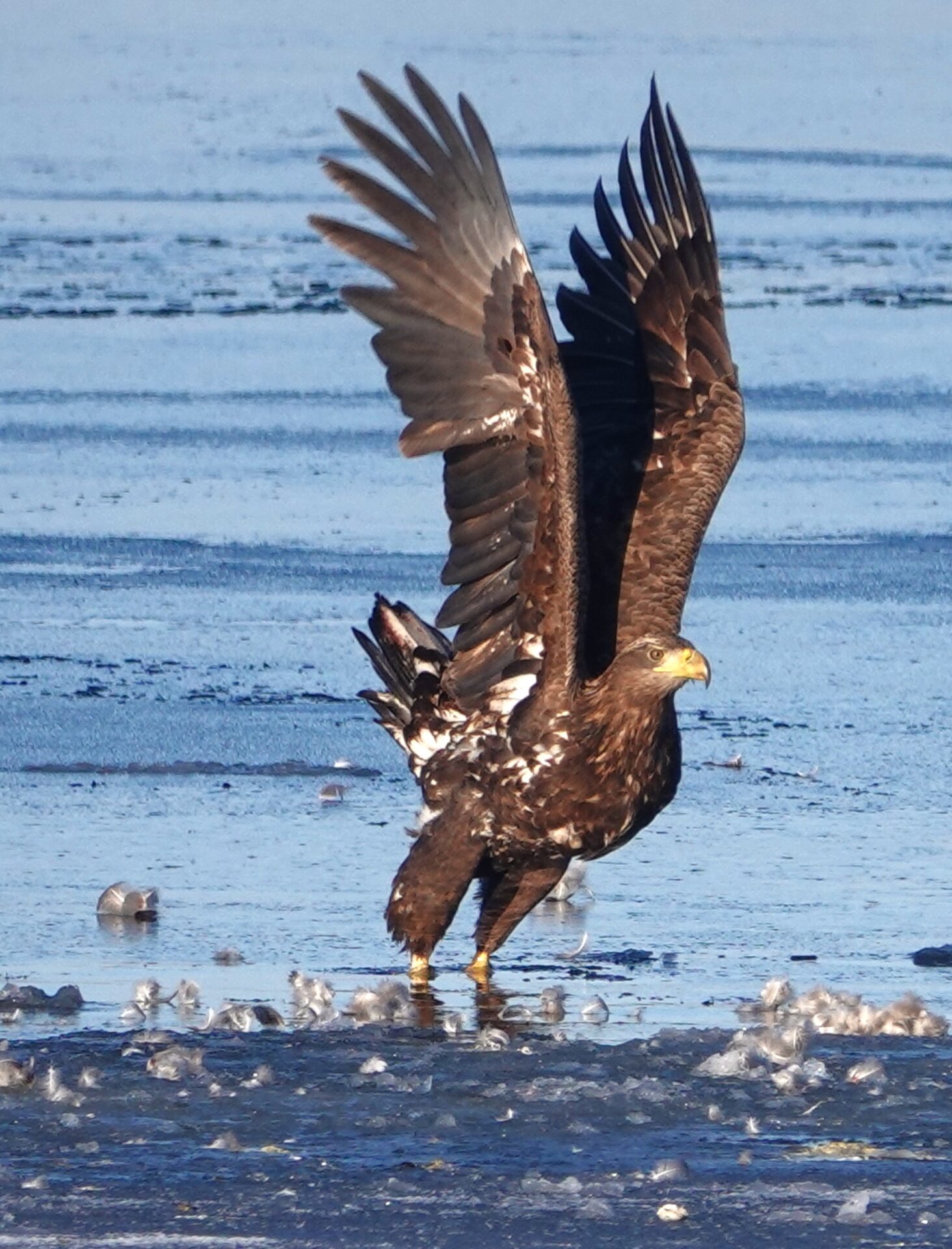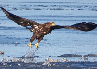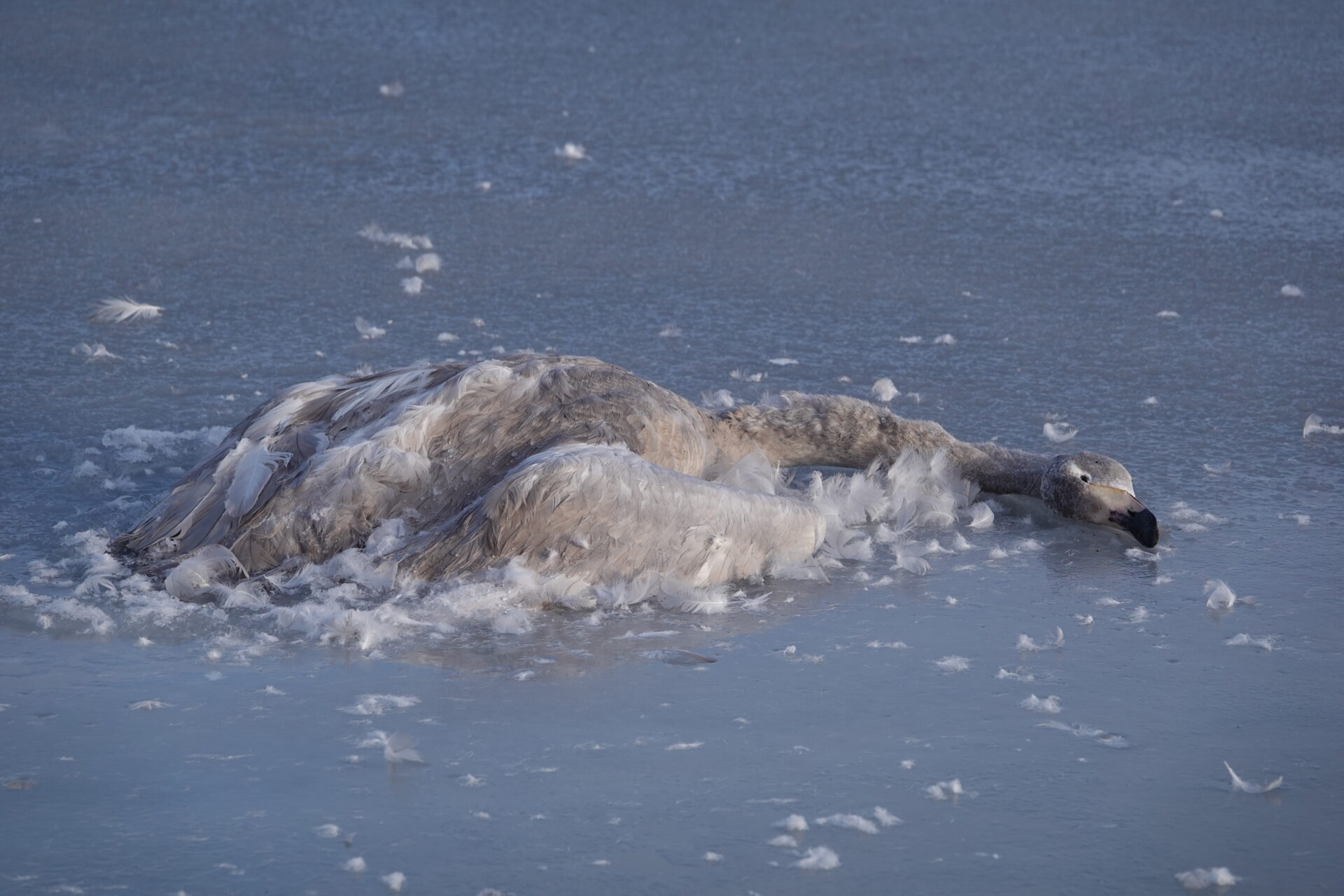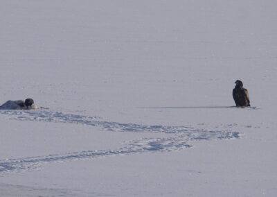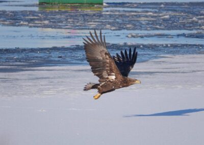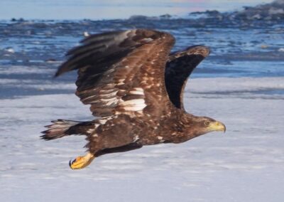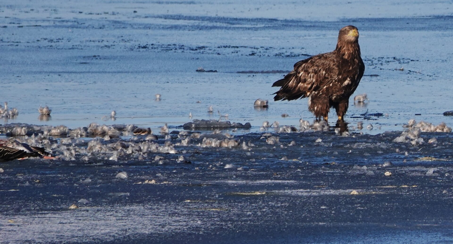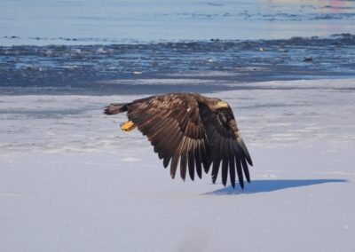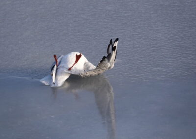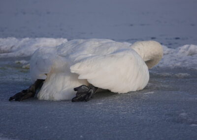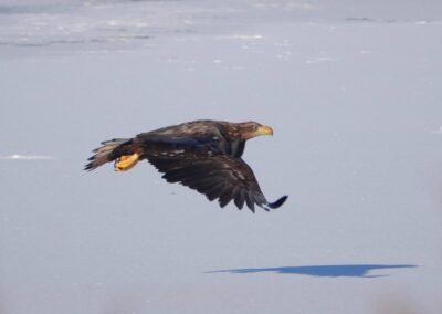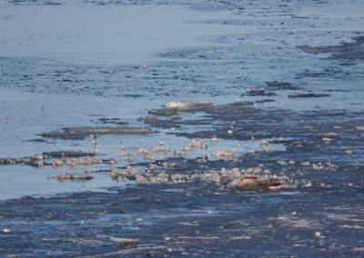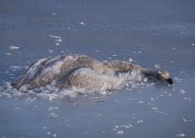 Die anhaltende Kälte Mitte Februar 2026 forderte ihren Tribut unter den Sing- und Höckerschwänen, unterschiedlichen Gänse- und Entenarten sowie Kormoranen und Graureihern. An manchen Tagen konnten wir über 30 Seeadler auf den Eisflächen der Schlei zählen.