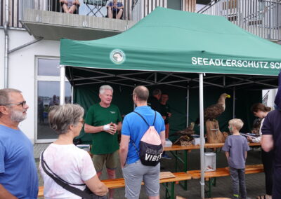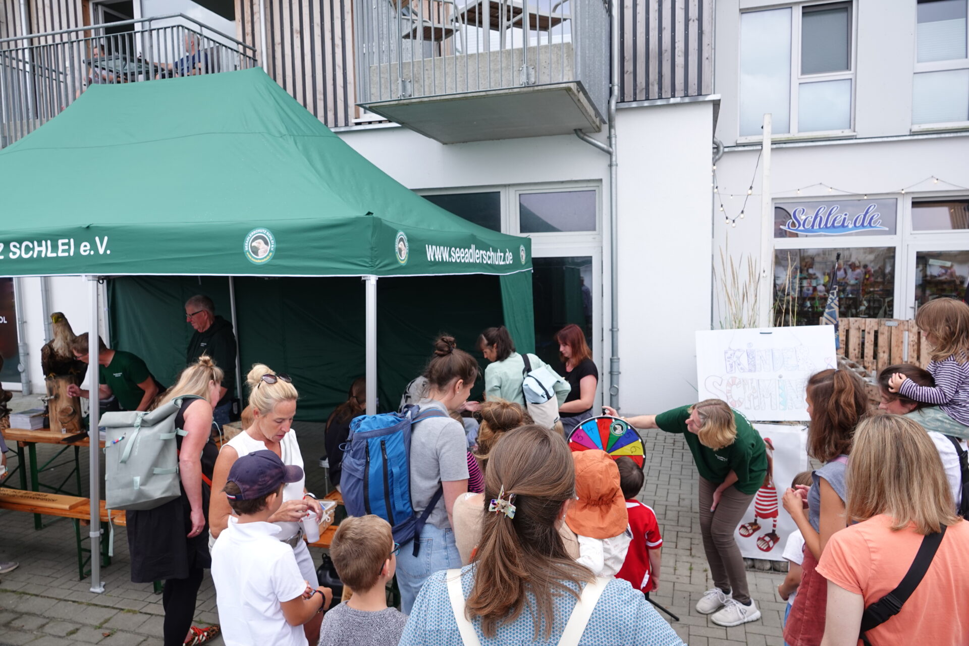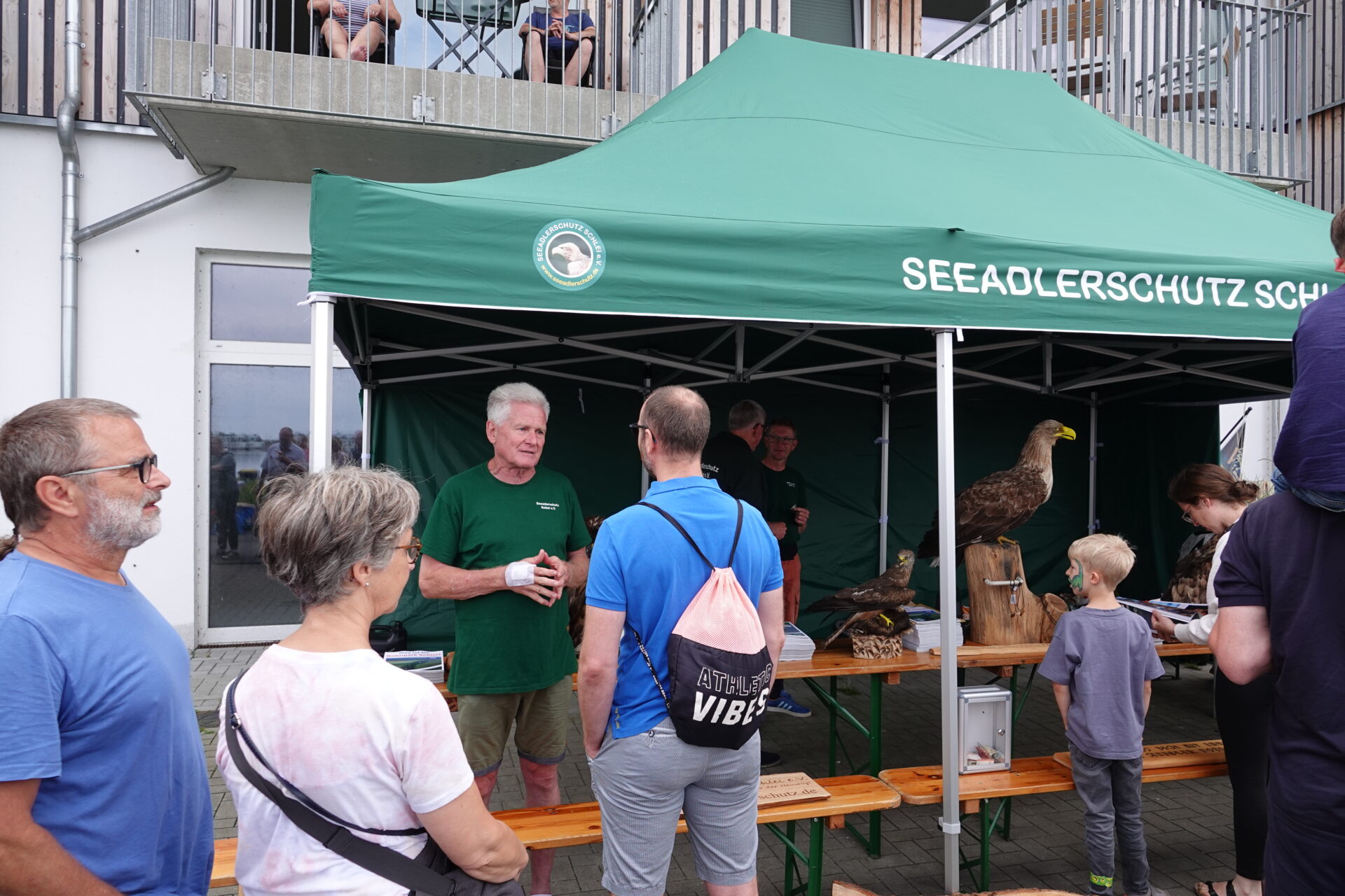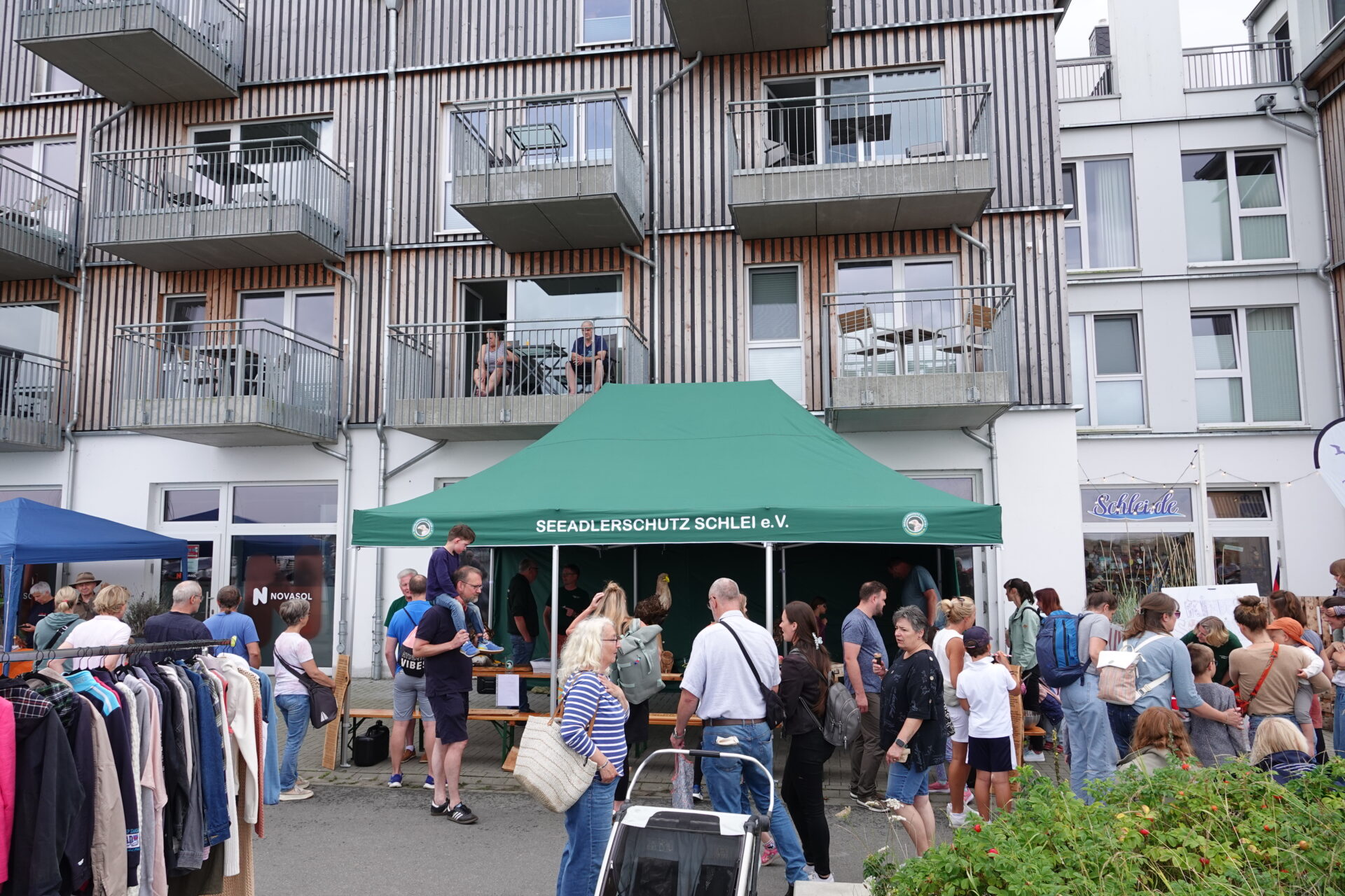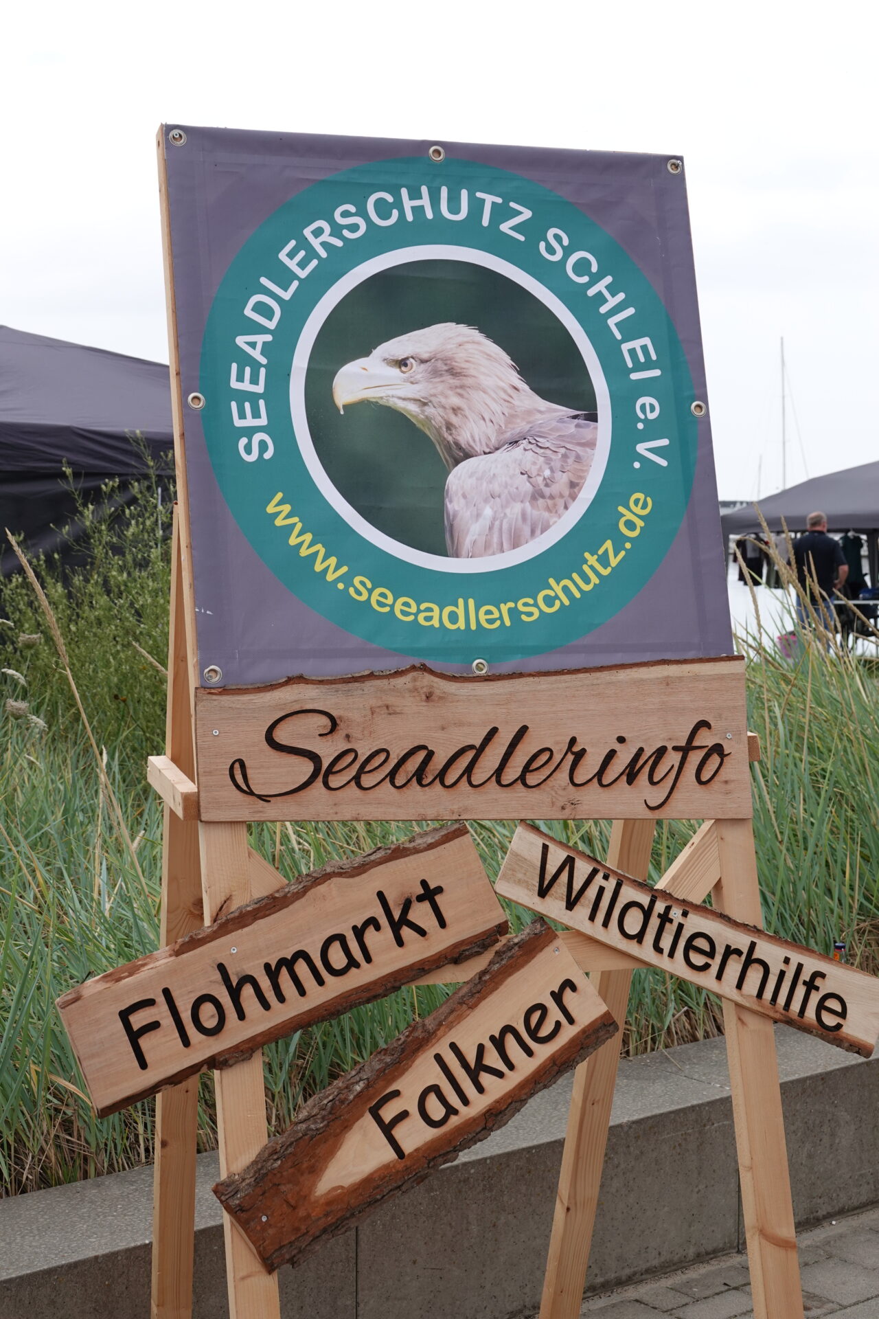 Für die Unternehmer in Olpenitz war sofort klar, dass sie den „Tag des Seeadlers“ wieder unterstützen wollen. Die Veranstaltung findet am Sonntag, dem 5. Juli bereits zum 3. Male im Ostseeresort statt und die vielen Besucher dürfen sich wieder auf einiges freuen: Der Flohmarkt beginnt um 9 Uhr und die Händler bieten wieder allerhand gebrauchte Waren an. Wer als Händler dabei sein möchte, sollte sich schnell einen der begehrten Plätze reservieren! Ansprechpartner ist Frank Frühling vom Seeadlerverein. Frank ist mobil unter 0173 – 256 7150 oder per Mail über frankfruehling@freenet.de zu erreichen. Bei ihm erfahren Händler alle weiteren Infos. Es dürfen nur gebrauchte Waren angeboten werden, bitte keine Neuware! Die Standgebühren kommen der Jugendarbeit im Seeadlerschutz zugute. Die ortsansässigen Unternehmer unterstützen die Veranstaltung nicht nur finanziell, sondern sind aktiv auch mit eigenen Aktionen für Familien dabei: Glücksrad, Edelsteinsuche, Gesichterschminken, Bernsteinschleifen u.v.m. Ein erfahrener Falkner führt einen lebenden Adler vor – die Kinder kommen ins Staunen! Das Artenschutzzentrum sowie der Seeadlerschutz Schlei e.V. sind mit Infoständen dabei und am Hafenbecken haben Besucher gute Chancen, Schweinswale zu beobachten. Mit etwas Glück fliegt ein Seeadler oder Rotmilan über das Gelände – beide haben ganz in der Nähe ihren Horst! Im Ostseeresort Olpenitz kann man auch jede Menge weiterer Vogelarten beobachten: Austernfischer, Kormorane, Eiderenten, Mauersegler, Turmfaken und viele Arten mehr. Kostenfrei erhalten Interessierte an mehreren Verteilerstellen das hochwertige Magazin „Der Seeadler“ mit Informationen rund um Schlei & Seeadler auf 180 Seiten!